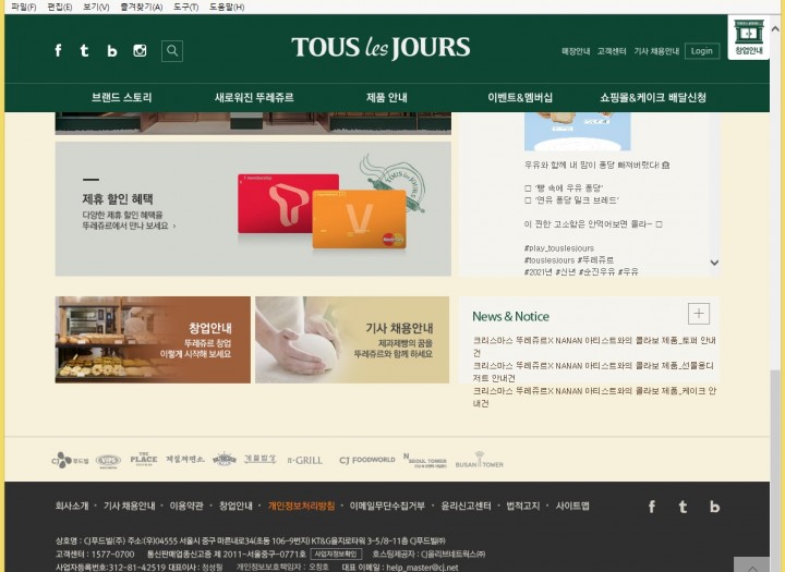 음식 뚜레쥬르.kr 상호 뚜레쥬르(cj푸드빌) 홈페이지주소 뚜레쥬르.kr 페이지 정보 작성자 아이디코리아 댓글 0건 조회 8,946회 작성일 21-01-13 11:12 목록으로 PREVIOUS삼성중공업.kr 21.01.13 NEXT초코파이.한국 21.01.13 본문 Detail view 관련링크 http://뚜레쥬르.kr/ 4878회 연결 목록 댓글 0 댓글목록 등록된 댓글이 없습니다.